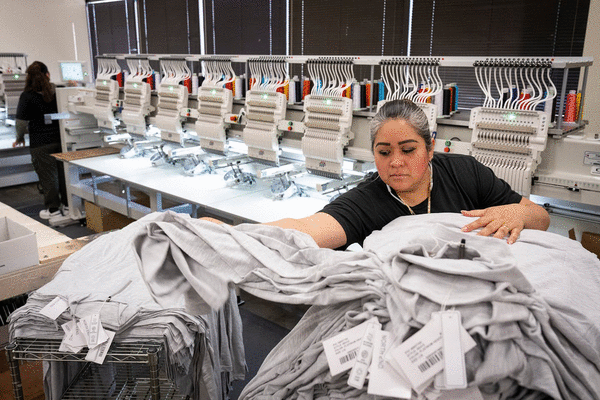 Today, workers who used to just package printed T-shirts can now trim embroidery products, too. Printing assistants became accredited so they can take over and operate an entire printer if needed.