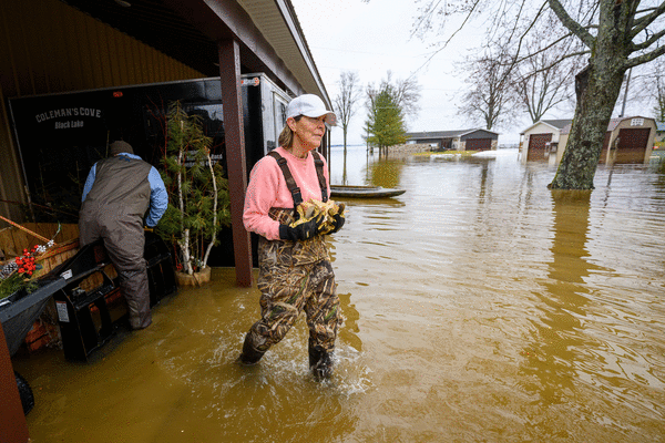 In Indian River, Michigan, homes along the Sturgeon River, including those on Grace Street and West Barbara Avenue, were surrounded by floodwaters Thursday. Residents piled hundreds of sandbags to keep floodwaters at bay.